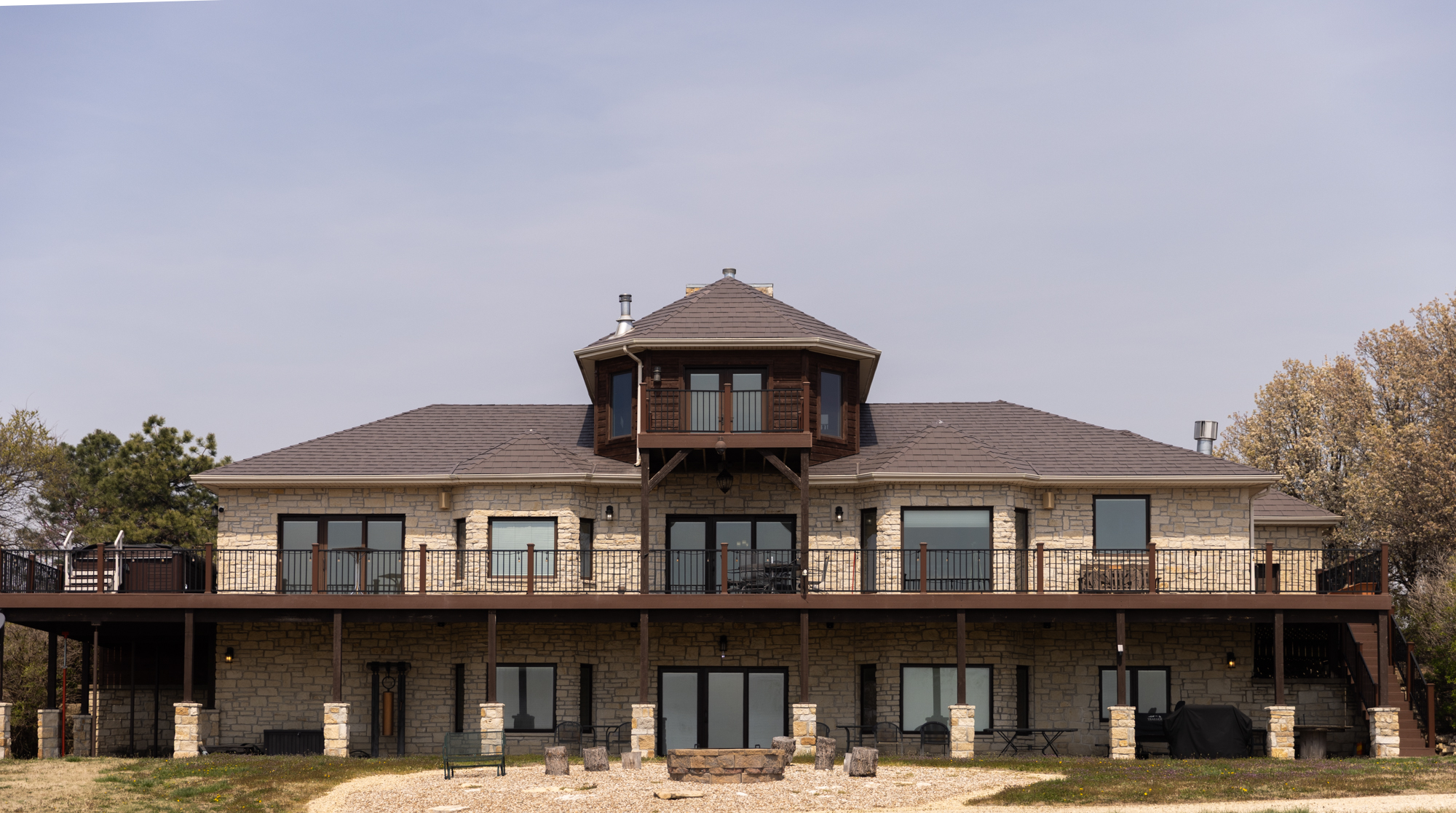 - Breathtaking Views: All-new windows and tri-panel sliding doors with between-the-glass blinds on the main and lower levels, plus French doors on the third level, frame stunning vistas of the lake and Flint Hills.