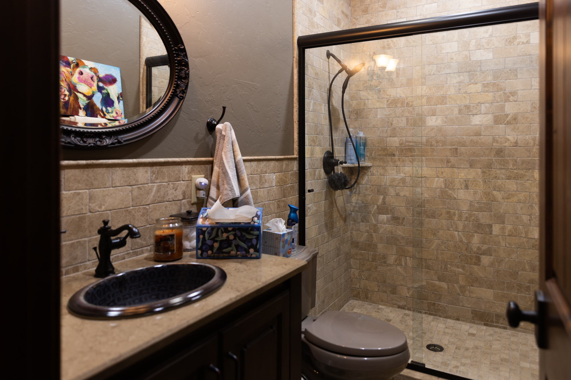 - Old-World Charm: Multi-step spackle-textured walls and ceilings (outside of wood/tile areas) create a warm, timeless ambiance.