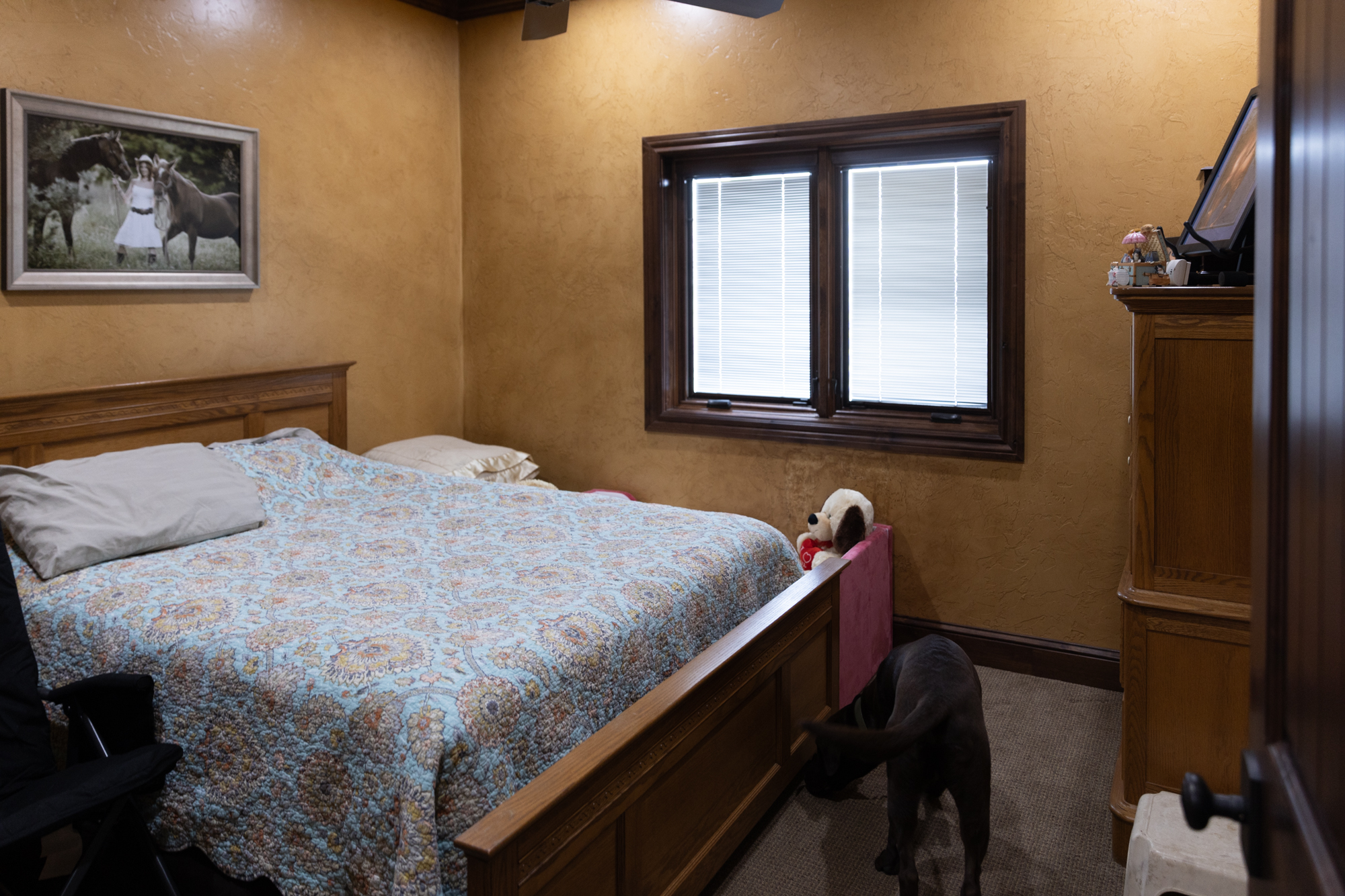 - Lower-Level Entertainment: Perfect for hosting, the lower level features a bedroom, study (or second bedroom), full kitchen, full bath, large entertainment area with a pool table, and a cinema screen with projector. A concrete safe room with steel doors and walls provides secure storage for firearms.